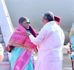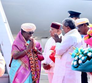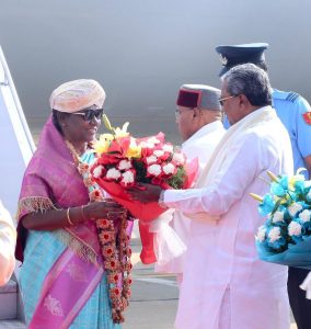 ಬೆಂಗಳೂರು;ಅಕ್ಟೋಬರ್ 26:ಇಂದು ರಾಷ್ಟ್ರಪತಿ ದ್ರೌಪದಿ ಮುರ್ಮು ರಾಜಧಾನಿ ಬೆಂಗಳೂರಿಗೆ ಆಗಮಿಸಿದರು.