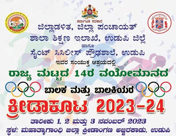 14 ವರ್ಷದೊಳಗಿನ ಶಾಲಾ ಬಾಲಕ- ಬಾಲಕಿಯರ ಮೂರು ದಿನಗಳ ರಾಜ್ಯಮಟ್ಟದ ಕ್ರೀಡಾಕೂಟ 2023-24, ನವೆಂಬರ್ 1ರಿಂದ 3ರವರೆಗೆ ಉಡುಪಿ ಅಜ್ಜರಕಾಡಿನ ಮಹಾತ್ಮಾ ಗಾಂಧಿ ಜಿಲ್ಲಾ ಕ್ರೀಡಾಂಗಣ ದಲ್ಲಿ ಹಮ್ಮಿಕೊಳ್ಳಲಾಗಿದೆ
