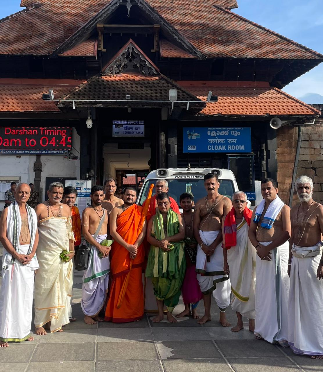 ಸಮಾಜದ ಅಧ್ಯಕ್ಷರಾದ ಶ್ರೀ ಉಪೇಂದ್ರ ಪೋತಿ, ಉಪಾಧ್ಯಕ್ಷರಾದ ಶ್ರೀನಾಗರಾಜ ರಾಯರು, ದೇವಳದ ಆಡಳಿತಾಧಿಕಾರಿ ಶ್ರೀ ರವೀಂದ್ರನ್ ಮಹಾನಗರಪಾಲಿಕೆ ಸದಸ್ಯೆ ಶ್ರೀಮತಿ ಜಾನಕಿ, ಕಾರ್ಯದರ್ಶಿ ಶ್ರೀ ಸೀತಾರಾಮ, ಶ್ರೀ ರಾಮರಾಜ್, ಕೇರಳ ಹಿಂದೂ ಪರಿಷತ್ ನ ಶ್ರೀ ಗೋಪಾಲ್ ಜಿ ಮಹಿಳಾ ಘಟಕದ ಅಧ್ಯಕ್ಷೆ.ಶ್ರಿಮತಿ ಶಾಂತಾ ರಾಜಲಕ್ಷ್ಮಿಮೋಹನ್,, ಯುವ ಘಟಕ ಅಧ್ಯಕ್ಷೆ ಕುಮಾರಿ ಮಾಲವಿಕಾ , ಕೇರಳ ತುಳು ಬ್ರಾಹ್ಮಣ ಸಮಾಜದ ಅಧ್ಯಕ್ಷ ಶ್ರೀ ಸುರೇಶ್ ಮತ್ತು ಇನ್ನಿತರ ಪದಾಧಿಕಾರಿಗಳು ಅಲ್ಲದೆ ಅನೇಕ ಗಣ್ಯರು ಉಪಸ್ಥಿತರಿದ್ದರು ಶ್ರೀ ಸೂರಜ್ ಸ್ವಾಗತಿಸಿ, ಶ್ರೀ ಸೂರ್ಯನಾರಾಯಣ ಕುಂಜೂರಾಯರು ಧನ್ಯವಾದವಿತ್ತರು.ಯಾತ್ರಾ ವ್ಯವಸ್ಥಾಪಕರಾದ ಶ್ರೀ ರಮೇಶ್ ಭಟ್ ಕೆ ಕಾರ್ಯಕ್ರಮವನ್ನು ಸಂಯೋಜಿಸಿದ್ದರು. ಮುಂದೆ ಶ್ರೀಗಳವರಿಗೆ ಶ್ರೀ ಅನಂತಪದ್ಮನಾಭ ದೇವರ ದರ್ಶನ ಮಾಡಿಸಿದ ದೇವಳದ ಪ್ರಧಾನ.ಅರ್ಚಕರಾದ ಶ್ರೀ ರಾಜೇಂದ್ರ ಅರಣಿತ್ತಾಯರು ಪರ್ಯಾಯವು ಯಶಸ್ವಿಯಾಗಿ ನಡೆಯಲಿ, ಶ್ರೀ ಅನಂತ ಪದ್ಮನಾಭನ ಅನುಗ್ರಹ ಸದಾ ಇರಲಿ ಎಂದು ಪ್ರಾರ್ಥಿಸಿ ಗೌರವ ವಿಶೇಷ ಪ್ರಸಾದ ನೀಡಿದರು, ಹಾಗೇ ಅನಂತ ಪದ್ಮನಾಭನ ಪ್ರಸಾದ ದರ್ಬಾರಿಗೆ ಕಳುಹಿಸುವುದಾಗಿ ತಿಳಿಸಿದರು . .ಶ್ರೀ ಶ್ರೀಗಳವರು ಹನುಮಾನ್ ದೇವಸ್ಥಾನದಲ್ಲಿ.ಸಂಸ್ಥಾನ ಪೂಜೆ ನಡೆಸಿ ಅನೇಕ ಭಕ್ತರಿಗೆ ಗೀತಾ ಲೇಖನ ದೀಕ್ಷೆ ನೀಡಿ ಅನುಗ್ರಹಿಸಿದರು . ತಿರುವನಂತಪುರದ ರಾಜರಾದ ಶ್ರೀ ಆದಿತ್ಯ ವರ್ಮರಿಗೆ ವಿಶೇಷ ಪರ್ಯಾಯ ರಾಯಸ ಕಳಿಸಿದ್ದು, ಧರ್ಭಾರು ಕಾರ್ಯಕ್ರಮದಲ್ಲಿ ಭಾಗವಹಿಸುವ ಭರವಸೆ ನೀಡಿದ್ದಾರೆ