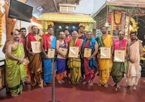 ಪೂಜ್ಯಶ್ರೀಪಾದರು ಈ ಕಾರ್ಯಕ್ರಮಗಳನ್ನು ಚೆನ್ನಾಗಿ ನಿರ್ವಹಿಸಿದ ವೈದಿಕ ವಿದ್ವಾಂಸರನ್ನು ಶಾಲು ಹೊದಿಸಿ ಆಶೀರ್ವದಿಸಿದರು .