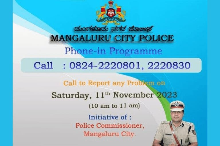 ಮಂಗಳೂರು :ನವೆಂಬರ್ 09:ಮಂಗಳೂರು ನಗರ ಪೊಲೀಸ್ ಘಟಕ ವತಿಯಿಂದ ಸಾರ್ವಜನಿಕ ಕುಂದುಕೊರತೆ ಸಭೆ ಆಲಿಸುವ ಸಲುವಾಗಿ ನ.11ರಂದು ಬೆಳಗ್ಗೆ 10ರಿಂದ 11ರವರೆಗೆ ಪೊಲೀಸ್ ಆಯುಕ್ತರ ಕಚೇರಿಯಲ್ಲಿ ಫೋನ್ ಇನ್ ಕಾರ್ಯಕ್ರಮವನ್ನು ಹಮ್ಮಿಕೊಳ್ಳಲಾಗಿದೆ.