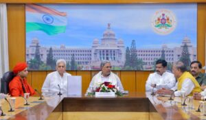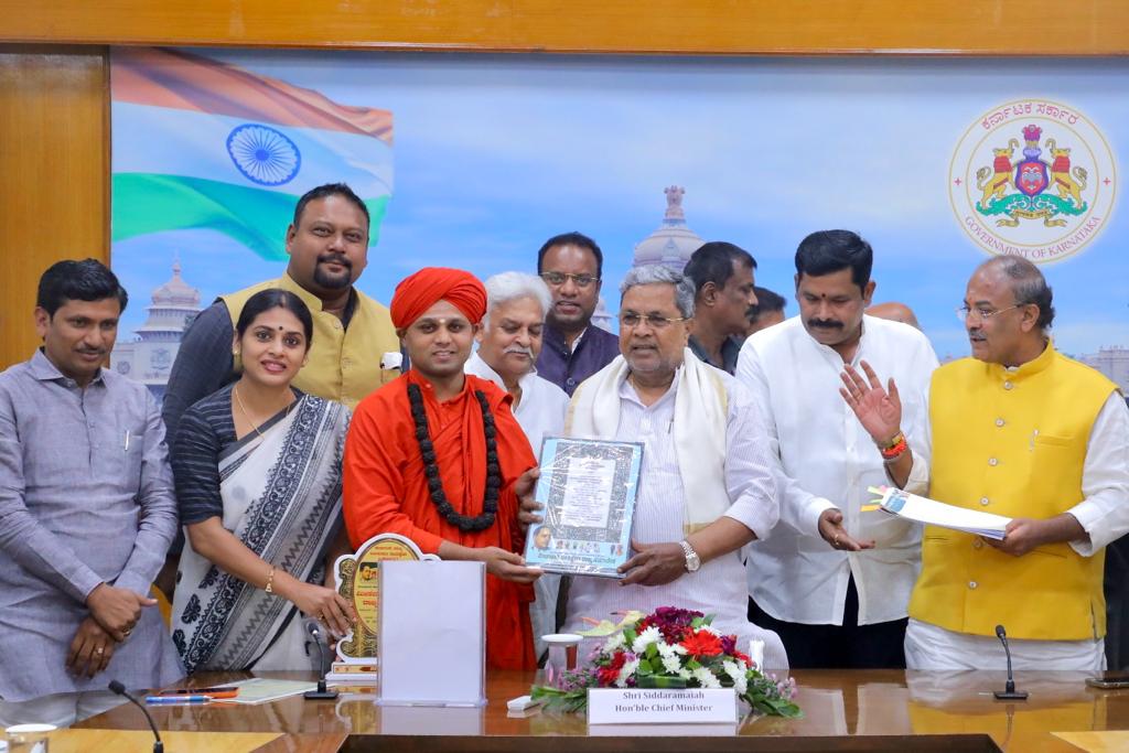 ಬೆಂಗಳೂರು, ಡಿಸೆಂಬರ್ 9: ಭೋವಿ ಗುರುಪೀಠದ ಇಮ್ಮಡಿ ಸಿದ್ದರಾಮೇಶ್ವರ ಸ್ವಾಮೀಜಿಯವರ ನೇತೃತ್ವದಲ್ಲಿ ಮೀಸಲಾತಿ ರಕ್ಷಣಾ ವೇದಿಕೆ ನಿಯೋಗವು ಇಂದು ಮುಖ್ಯಮಂತ್ರಿ ಸಿದ್ದರಾಮಯ್ಯ ಅವರನ್ನು ಭೇಟಿ ಮಾಡಿತು.