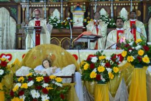 ಭಾನುವಾರ ರಾತ್ರಿ ಪೂಜೆಯ ವೇಳೆ ಸಿಂಗರಿಸಿಟ್ಟ ಗೋದಲಿಯಲ್ಲಿ ಬಾಲಯೇಸು ಮೂರ್ತಿಯನ್ನು ಇಟ್ಟು ದೇವರ ಸ್ತುತಿ, ಜೋಗುಳದ ಮೂಲಕ ಭಕ್ತಾದಿಗಳು ಆರಾಧಿಸಿದರು. ಮೇಣದ ಬತ್ತಿಗಳನ್ನು ಬೆಳಗಿ ಹೂವು ಸುಗಂಧಗಳನ್ನು ಅರ್ಪಿಸುವುದರ ಮೂಲಕ ಯೇಸು ಸ್ವಾಮಿಯ ಜನನವನ್ನು ಕ್ರೈಸ್ತ ಭಾಂಧವರು ಸ್ವಾಗತಿಸಿದರು.