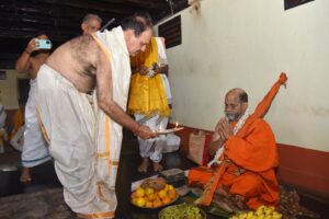 ಉಡುಪಿ : ಜನವರಿ 10:ಪರಮಪೂಜ್ಯ ಪರ್ಯಾಯ ಶ್ರೀ ಪುತ್ತಿಗೆ ಶ್ರೀ ಶ್ರೀ ಸುಗುಣೇಂದ್ರತೀರ್ಥ ಶ್ರೀಪಾದರು ಉಡುಪಿಯ ಅಂಬಲಪಾಡಿ ಶ್ರೀ ಲಕ್ಷ್ಮೀಜನಾರ್ದನ ದೇವಸ್ಥಾನಕ್ಕೆ ಬೇಟಿನೀಡಿ ದೇವರ ದರ್ಶನ ಮಾಡಿದರು ದೇವಸ್ಥಾನದ ಧರ್ಮದರ್ಶಿಗಳಾದ ಡಾ. ವಿಜಯ ಬಲ್ಲಾಳ್ ಅವರು ಸ್ವಾಗತಿಸಿ ಗೌರವಾರ್ಪಣೆ ಮಾಡಿದರು