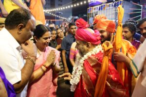 ಉಡುಪಿಯಲ್ಲಿ ನಡೆಯುತ್ತಿರುವ ಪರ್ಯಾಯ ಮಹೋತ್ಸವದ ಅಂಗವಾಗಿ ಗುರುವಾರ ಬೆಳಗಿನ ಜಾವ 2.30ರಿಂದ ನಡೆದ ಸ್ತಬ್ಧಚಿತ್ರಗಳ ಮೆರವಣಿಗೆಯಲ್ಲಿ ಪರ್ಯಾಯ ಮಹೋತ್ಸವ ಸಮಿತಿಯ ಗೌರವಾಧ್ಯಕ್ಷರೂ ಆಗಿರುವ ಮಹಿಳಾ ಮತ್ತು ಮಕ್ಕಳ ಅಭಿವೃದ್ಧಿ, ವಿಕಲಚೇತನರ ಹಾಗೂ ಹಿರಿಯ ನಾಗರೀಕರ ಸಬಲೀಕರಣ ಸಚಿವರು ಹಾಗೂ ಉಡುಪಿ ಜಿಲ್ಲಾ ಉಸ್ತುವಾರಿ ಸಚಿವರಾದ ಲಕ್ಷ್ಮೀ ಆರ್ ಹೆಬ್ಬಾಳ್ಕರ್ ಭಾಗವಹಿಸಿದರು. ಈ ವೇಳೆ ಪರ್ಯಾಯ ಶ್ರೀ ಕೃಷ್ಣ ಪೂಜಾ ಕೈಂಕರ್ಯ ನೇರವೇರಿಸಲಿರುವ ಪುತ್ತಿಗೆ ಮಠಾಧೀಶರಾದ ಶ್ರೀ ಸುಗುಣೇಂದ್ರ ತೀರ್ಥ ಶ್ರೀಪಾದರು ಹಾಗೂ ಕಿರಿಯ ಯತಿಗಳಾದ ಶ್ರೀ ಸುಶ್ರೀಂದ್ರ ತೀರ್ಥ ಶ್ರೀಪಾದರು, ಕೇಂದ್ರ ಸಚಿವೆ ಶೋಭಾ ಕರಂದ್ಲಾಜೆ, ಶಾಸಕರಾದ ಯಶ್ಪಾಲ್ ಸುವರ್ಣ, ಸುನೀಲ್ ಕುಮಾರ್, ಗುರ್ಮೆ ಸುರೇಶ್ ಶೆಟ್ಟಿ ಸೇರಿದಂತೆ ಹಲವು ಗಣ್ಯರು ಹಾಗೂ ಸಾವಿರಾರು ಸಂಖ್ಯೆಯಲ್ಲಿ ಶ್ರೀ ಕೃಷ್ಣನ ಭಕ್ತರು ಉಪಸ್ಥಿತರಿದ್ದರು.