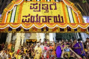 ಉಡುಪಿ : ಜನವರಿ 18 : ದೃಶ್ಯ ನ್ಯೂಸ್ ; ಅಷ್ಟಮಠಗಳ ನಾಡು ಉಡುಪಿಯಲ್ಲಿ 2 ವರ್ಷಗಳಿಗೆ ಒಮ್ಮೆ ನಡೆಯುವ ಪರ್ಯಾಯ ಕಾರ್ಯಕ್ರಮ ಇಂದು ಆರಂಭವಾಗಿದೆ. ಮೆರವಣಿಯಲ್ಲಿ ಸುಗುಣೇಂದ್ರ ತೀರ್ಥ ಸ್ವಾಮೀಜಿ ಮತ್ತು ಶಿಷ್ಯರಾದ ಸುಶೀಂದ್ರ ತೀರ್ಥರು ಭಾಗಿಯಾಗಿದ್ದು, ಹತ್ತಾರು ಟ್ಯಾಬ್ಲೋಗಳು ಸೇರಿದಂತೆ ಭಜನಾ ತಂಡ ಹುಲಿವೇಷ ತಂಡಗಳು ಪರ್ಯಾಯ ಮೆರವಣಿಗೆಯ ಮೆರುಗನ್ನು ಹೆಚ್ಚಿಸಿದವು. ಉಡುಪಿಯ ಜೋಡುಕಟ್ಟೆಯಿಂದ ಪರ್ಯಾಯ ಮೆರವಣಿಗೆ ಆರಂಭವಾಗಿ ರಥ ಬೀದಿಯವರೆಗೂ ಸಾಗಿತು.