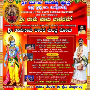ಸಂಜೆ ಗಂಟೆ ನಾಲ್ಕರಿಂದ ಶ್ರೀಮತಿ ಚಂದ್ರಕಲಾ ಶರ್ಮಾ ಕೊರಂಗ್ರಪಾಡಿ ಅವರಿಂದ ರಾಮನಾಮ ಸಂಕೀರ್ತನೆ.