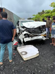 ಮೀನಿನ ಟ್ರಕ್ ಕೇರಳದ ಕಡೆಗೆ ಹೋಗುತ್ತಿದ್ದ ವೇಳೆ ಅಂಬಲಪಾಡಿ ಸರ್ವಿಸ್ ರಸ್ತೆಯಿಂದ ಹೆದ್ದಾರಿ ಪ್ರವೇಶಿಸಿದ ಮತ್ತೊಂದು ವಾಹನಕ್ಕೆ ಢಿಕ್ಕಿಯಾಗುವುದನ್ನು ತಪ್ಪಿಸಲು ಟ್ರಕ್ ಚಾಲಕ ಪ್ರಯತ್ನಿಸಿದ್ದಾನೆ. ಈ ವೇಳೆ ನಿಯಂತ್ರಣ ತಪ್ಪಿದ ಟ್ರಕ್ ಡಿವೈಡರ್ ದಾಟಿ ಎದುರಿನಿಂದ ಬರುತ್ತಿದ್ದ ಕಾರಿಗೆ ಢಿಕ್ಕಿ ಹೊಡೆದು ಪಲ್ಟಿಯಾಗಿದೆ.
