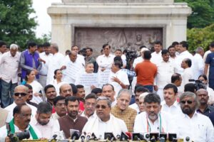ವಿಧಾನಸೌಧದ ಗಾಂಧಿ ಪ್ರತಿಮೆಯ ಬಳಿ ಸಾಂಕೇತಿಕವಾಗಿ ಹಮ್ಮಿಕೊಂಡಿದ್ದ ಪ್ರತಿಭಟನೆಯ ನಂತರ ಮಾಧ್ಯಮದವರೊಂದಿಗೆ ಅವರು ಮಾತನಾಡಿದರು.