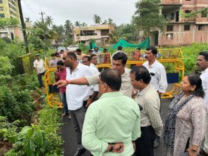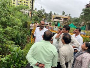 ಉಡುಪಿ : ಜುಲೈ 30 :ಉಡುಪಿ ನಗರಸಭೆ ವ್ಯಾಪ್ತಿಯ ಮೂಡುಸಗ್ರಿ ವಾರ್ಡಿನಲ್ಲಿ ಮಳೆಯಿಂದಾಗಿ ಹಾನಿಗೀಡಾದ ಚಕ್ರತೀರ್ಥ ಮಾರ್ಗದ ಕಿರುಸೇತುವೆ ವಾಹನ ಸಂಚಾರಕ್ಕೆ ಅಪಾಯ ಸ್ಥಿತಿಯಲ್ಲಿರುವ ಹಿನ್ನಲೆಯಲ್ಲಿ ಉಡುಪಿ ಶಾಸಕರಾದ ಶ್ರೀ ಯಶ್ ಪಾಲ್ ಸುವರ್ಣ ಸ್ಥಳಕ್ಕೆ ಭೇಟಿ ನೀಡಿ ಪರಿಶೀಲನೆ ನಡೆಸಿದರು.