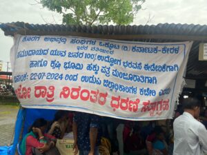 ಉಡುಪಿ :ಜುಲೈ 31:ಕೊರಗ ಅಭಿವೃದ್ದಿ ಸಂಘಗಳ ಒಕ್ಕೂಟ (ರಿ.) ಕರ್ನಾಟಕ- ಕೇರಳ ಇದರ ವತಿಯಿಂದ ಸಮುದಾಯದ ಯುವ ಜನರ 100% ಉದ್ಯೋಗ ಭರವಸೆ ಈಡೇರಿಕೆಗಾಗಿ ಹಾಗೂ ಕೃಷಿ ಭೂಮಿ ಹಕ್ಕು ಪತ್ರ ಮಂಜೂರಾತಿಗಾಗಿ ಉಡುಪಿ ಜಿಲ್ಲಾಧಿಕಾರಿಗಳ ಕಛೇರಿ ಎದುರು ಕಳೆದ 7 ದಿನಗಳಿಂದ ನಡೆಸುತ್ತಿರುವ ಅಹೋ ರಾತ್ರಿ ನಿರಂತರ ಧರಣಿ ಸತ್ಯಾಗ್ರಹದಲ್ಲಿ ಮಾಜಿ ಸಚಿವ ಪ್ರಮೋಧ್ ಮಧ್ವಾರಾಜ್ ಭಾಗವಹಿಸಿದರು