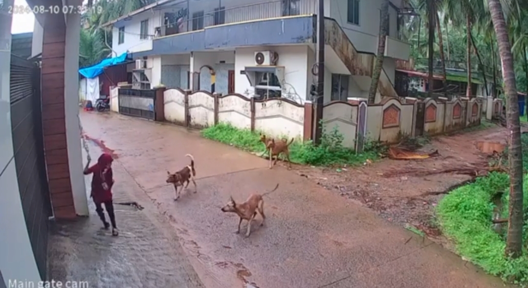 ಉಡುಪಿ, ಆ.10: ಶಾಲಾ ವಿದ್ಯಾರ್ಥಿನಿಯ ಮೇಲೆ ಬೀದಿ ನಾಯಿಗಳು ಅಟ್ಯಾಕ್ ಮಾಡಿದ ಘಟನೆ ಉಡುಪಿಯ ಹೂಡೆ ಪರಿಸರದಲ್ಲಿ ನಡೆದಿದೆ. ಬೆಳಿಗ್ಗೆ ಶಾಲೆಗೆ ಹೋಗುತ್ತಿದ್ದ ವಿದ್ಯಾರ್ಥಿನಿಯ ಮೇಲೆ ನಾಯಿಗಳು ದಾಳಿ ಮಾಡಿದ್ದು, ಕೈಯಲ್ಲಿ ಕೊಡೆ ಹಿಡಿದು ನಿಂತಿದ್ದ ವಿದ್ಯಾರ್ಥಿನಿಯತ್ತ ನಾಯಿಗಳು ನುಗ್ಗಿದೆ.