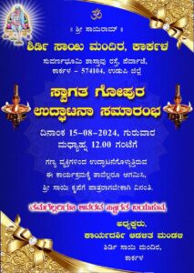 ಕಾರ್ಕಳ : ಆಗಸ್ಟ್ 14:ಶಿರ್ಡಿ ಸಾಯಿ ಮಂದಿರ ಸುವರ್ಣಭೂಮಿ ಶಾಸ್ತಾವು ರಸ್ತೆ, ಪೆರ್ವಾಜೆ, ಕಾರ್ಕಳ ಇದರ ಸ್ವಾಗತಗೋಪುರ ಉದ್ಘಾಟನಾ ಸಮಾರಂಭ ಆಗಸ್ಟ್ 15ರಂದು ,ಮಧ್ಯಾಹ್ನ 12.00 ಗಂಟೆಗೆ ನಡೆಯಲಿದೆ