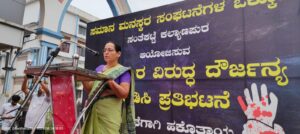 ಪ್ರತಿಭಟನೆಯನ್ನುದ್ದೇಶಿಸಿ ಮಾತನಾಡಿದ ಉಪನ್ಯಾಸಕಿ ಶಾರದ ಅವರು, ಮಹಿಳೆಯರನ್ನು ಸಮಾಜ ಯಾಕೆ ದುರ್ಬಲವೆಂದು ಹೇಳುತ್ತದೆ. ದೈಹಿಕವಾಗಿಯೂ ನಮ್ಮ ಪುರುಷರಷ್ಟೇ ಸಮಾನರು. ಯಾವ ಕಾರಣಕ್ಕೂ ನಾವು ಅಸಮಾನರು ಅಲ್ಲ. ನಾವು ಸಮಾನರಾಗಿ ಶಕ್ತಿಯುತರು ಎಂದರು.