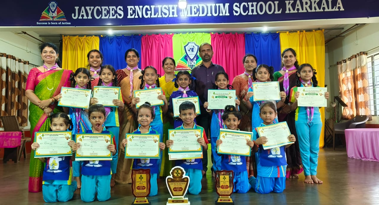 ಜೇಸಿ ಇಂಟರ್ ನ್ಯಾಷನಲ್ ಆಂಗ್ಲ ಮಾಧ್ಯಮ ಶಾಲೆಯ ಶಿಕ್ಷಕಿ ಪವಿತ್ರರವರಿಗೆ ಜಿಲ್ಲಾ ಮಟ್ಟದ ಗೀತಗಾಯನ ಸ್ಪರ್ಧೆಯಲ್ಲಿ ತೃತೀಯ ಪ್ರಶಸ್ತಿ.