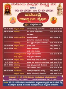 ಅಕ್ಟೋಬರ್ 05ರಂದು ಸಂಜೆ ರಾಜಾಂಗಣದಲ್ಲಿ ಸಂಜೆ 5ರಿಂದ ಸಾಮೂಹಿಕ ಅಷ್ಟಾದಶ ದುರ್ಗಾ ದೀಪನಮಸ್ಕಾರ ಅಕ್ಟೋಬರ್ 11ರಂದು ಚಂಡಿಕಾಯಾಗ ಪೂರ್ಣಾಹುತಿಯು ಬೆಳಿಗ್ಗೆ 11 ಗಂಟೆಗೆ ನಡೆಯಲಿದೆ. ಪ್ರತಿನಿತ್ಯ ರಾಜಾಂಗಣದಲ್ಲಿ ಹಾಗೂ ಮಧ್ವಮಂಟಪದಲ್ಲಿ ವಿವಿಧ ಸಾಂಸ್ಕೃತಿಕ ಕಾರ್ಯಕ್ರಮಗಳು ಸಂಪನ್ನಗೊಳ್ಳಲಿವೆ.