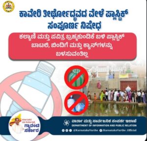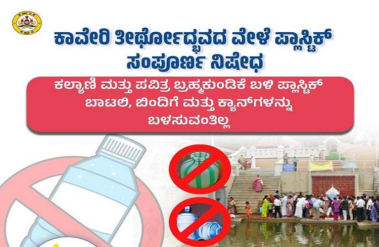 ಉಡುಪಿ : ಅಕ್ಟೋಬರ್ 15:ಮಡಿಕೇರಿಯ ತಲಕಾವೇರಿಯಲ್ಲಿ ಅಕ್ಟೋಬರ್ 17ರಂದು ಬೆಳಗ್ಗೆ 7.40ಕ್ಕೆ ನಡೆಯಲಿರುವ ಶ್ರೀಕಾವೇರಿ ತುಲಾಸಂಕ್ರಮಣ ಪವಿತ್ರ ತೀರ್ಥೋದ್ಭವದಲ್ಲಿ ಕಲ್ಯಾಣಿ ಮತ್ತು ಪವಿತ್ರ ಬ್ರಹ್ಮಕುಂಡಿಕೆ ಬಳಿ ಪ್ಲಾಸ್ಟಿಕ್ ಬಾಟಲಿ, ಬಿಂದಿಗೆ ಮತ್ತು ಕ್ಯಾನ್ಗಳ ಬಳಕೆಯನ್ನು ಸಂಪೂರ್ಣ ನಿಷೇಧಿಸಲಾಗಿದೆ.
