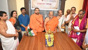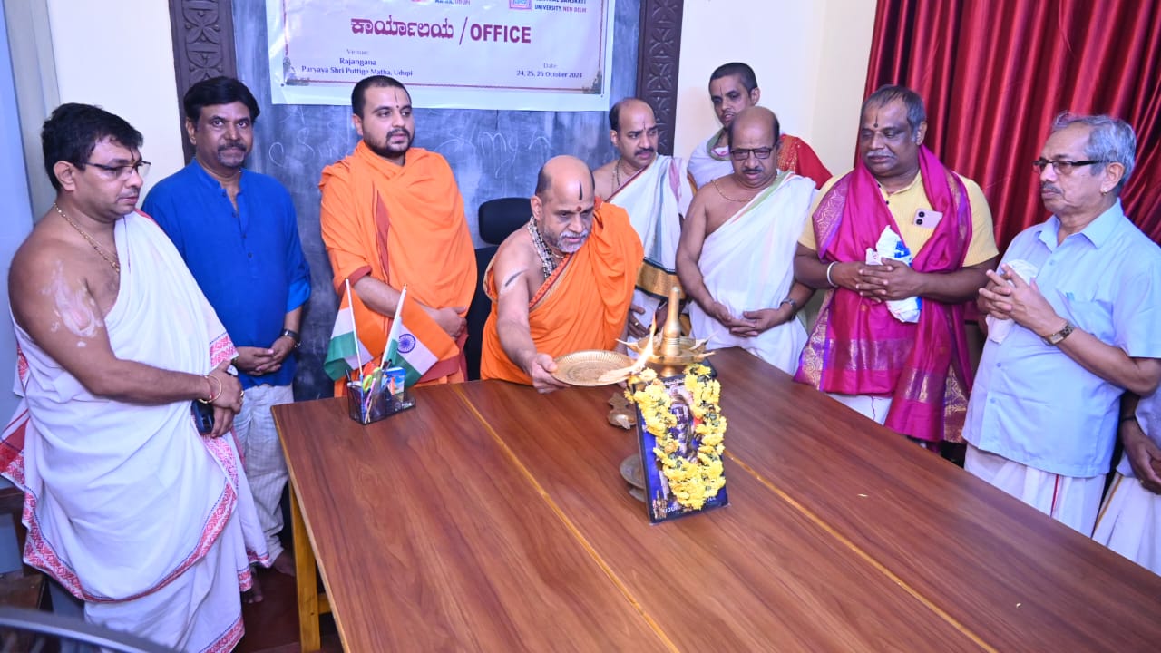 ಉಡುಪಿ :ಅಕ್ಟೋಬರ್ 16 :ಶ್ರೀಕೃಷ್ಣ ಮಠದ ರಾಜಾಂಗಣದಲ್ಲಿ ಅಕ್ಟೋಬರ್ 24,25ಮತ್ತು26ನೇ ತಾರೀಕಿನಂದು ನಡೆಯುವ ಅಖಿಲ ಭಾರತೀಯ ಪ್ರಾಚ್ಯ ವಿದ್ಯಾ ಸಮ್ಮೇಳನದ (AIOC) ಕಾರ್ಯಾಲಯದ ಉದ್ಘಾಟನೆಯನ್ನು ಪರ್ಯಾಯ ಪುತ್ತಿಗೆ ಮಠಾಧೀಶರಾದ ಶ್ರೀ ಶ್ರೀ ಸುಗುಣೇಂದ್ರತೀರ್ಥ ಶ್ರೀಪಾದರು ಹಾಗೂ ಶ್ರೀಶ್ರೀಸುಶ್ರೀಂದ್ರತೀರ್ಥಶ್ರೀಪಾದರು ಜೊತೆಯಾಗಿ ಗೀತಾಮಂದಿರದಲ್ಲಿ ಉದ್ಘಾಟಿಸಿದರು.