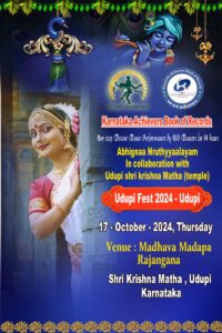 ಉಡುಪಿ :ಅಕ್ಟೋಬರ್ 16:ಅಭಿಘ್ನ ನೃತ್ಯಾಲಯಂ ಸಂಸ್ಥೆ ವತಿಯಿಂದ ಉಡುಪಿ ಶ್ರೀಕೃಷ್ಣ ಮಠ ಪರ್ಯಾಯ ಪುತ್ತಿಗೆ ಮಠದ ಸಹಯೋಗದೊಂದಿಗೆ ನಾಳೆ (ಅ.17) ಶ್ರೀಕೃಷ್ಣಮಠದ ಮಧ್ವಮಂಟದಲ್ಲಿ ಹಾಗೂ ರಾಜಾಂಗಣದಲ್ಲಿ ಬುಕ್ ಆಫ್ ರೆಕಾರ್ಡ್ ದಾಖಲೆಗಾಗಿ 100 ಮಂದಿ 14 ಗಂಟೆಗಳ ನಿರಂತರ ಭರತನಾಟ್ಯ ಪ್ರಸ್ತುತಪಡಿಸಲಿದ್ದಾರೆ