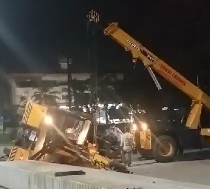 ವಾಹನಗಳು ಸಂಚರಿಸುವ ರಸ್ತೆಯ ಪಕ್ಕದಲ್ಲಿ ಕಂಡು ಬಂದ ಅಪಾಯಕಾರಿ ಸನ್ನಿವೇಶ ಜನರಲ್ಲಿ ಆತಂಕ ಸೃಷ್ಟಿಸಿತ್ತು ಬಳಿಕ ತಲೆ ಕೆಳಗಾಗಿ ಬಿದ್ದ ಕ್ರೈನನ್ನು ಬೃಹತ್ ಗಾತ್ರದ ಮತ್ತೊಂದು ಕ್ರೈನ್ ಮೂಲಕ ಎತ್ತಲಾಯಿತು.