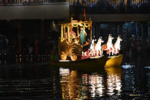 .ನಂತರ ಲಕ್ಷದೀಪೋತ್ಸವ ದ ಅಂಗವಾಗಿ ಮಧ್ವ ಸರೋವರದಲ್ಲಿ ಪಾರ್ಥ ಸಾರಥಿ ರಥದ ಮಾದರಿಯ ತೆಪ್ಪದಲ್ಲಿ ಆಕರ್ಷಕ ತೆಪ್ಪದಲ್ಲಿ ಶ್ರೀ ಕೃಷ್ಣ ಮುಖ್ಯಪ್ರಾಣ ದೇವರನ್ನಿಟ್ಟು ತೆಪ್ಪೋತ್ಸವವನ್ನು ನೆರವೇರಿಸಲಾಯಿತು. ತದನಂತರ ಅಲಂಕೃತ ರಥಗಳಲ್ಲಿ ಶ್ರೀ ಕೃಷ್ಣ ಮುಖ್ಯಪ್ರಾಣ ದೇವರು ಹಾಗೂ ಅನಂತೇಶ್ವರ, ಚಂದ್ರೇಶ್ವರ ದೇವರನ್ನಿಟ್ಟು ರಥಬೀದಿಯ ಸುತ್ತಲೂ ವೈವಿಧ್ಯಮಯ ಲಕ್ಷ ದೀಪಗಳ ನಡುವೆ, ನಾದಸ್ವರ, ಪಂಚ ವಾದ್ಯ, ಚಂಡೆ ವಾದ್ಯಗಳೊಂದಿಗೆ ಆಕರ್ಷಕ ಸುಡುಮದ್ದು ಪ್ರದರ್ಶನದೊಂದಿಗೆ ತುಳಸಿ ಸಂಕೀರ್ಥನೆಯೊಂದಿಗೆ ರಥೋತ್ಸವವು ಅತ್ಯಂತ ವೈಭವದಿಂದ ನಡೆಯಿತು