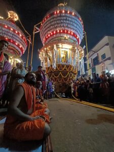 ಉಡುಪಿ : ನವೆಂಬರ್ 14:ಉಡುಪಿಯ ಶ್ರೀ ಕೃಷ್ಣ ಮಠದಲ್ಲಿ ಲಕ್ಷದೀಪೋತ್ಸವದ ಪ್ರಯುಕ್ತ ಪರ್ಯಾಯ ಶ್ರೀ ಪುತ್ತಿಗೆ ಮಠದ ಉಭಯ ಶ್ರೀಪಾದರು ರಥಬೀದಿಯ ಸುತ್ತಲೂ ಹಣತೆಯನ್ನಿಟ್ಟು ದೀಪೋತ್ಸವಕ್ಕೆ ಚಾಲನೆಯನ್ನು ನೀಡಿದರು.