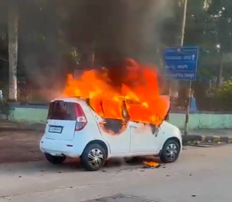ಕಾರನ್ನು ಸ್ಮಾರಕದ ಸಮೀಪ ಪಾರ್ಕ್ ಮಾಡಲಾಗಿದ್ದು, ಇದ್ದಕ್ಕಿದ್ದ ಹಾಗೆ ಬೆಂಕಿ ಹೊತ್ತಿಕೊಂಡಿದೆ.