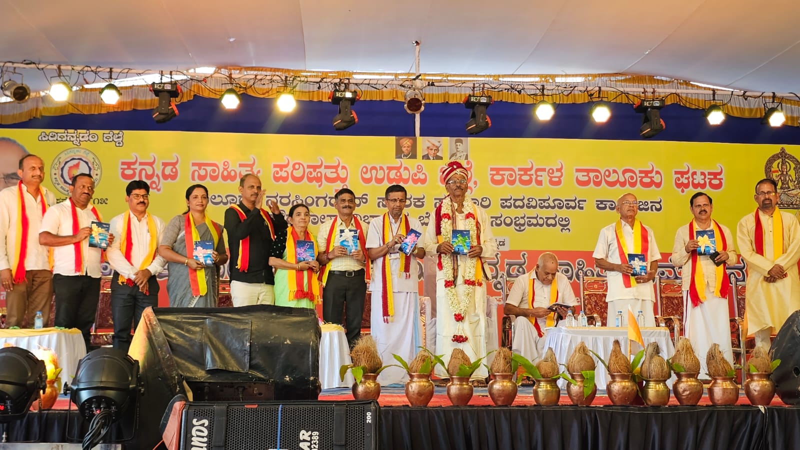 ಕಾರ್ಕಳ : ಡಿಸೆಂಬರ್ 08: ಶಿರ್ಲಾಲು ನಾಲ್ಕೂರು ನರಸಿಂಗ ರಾವ್ ಸರಕಾರಿ ಪದವಿಪೂರ್ವ ಕಾಲೇಜಿನಲ್ಲಿ ನಡೆದ ೨೦ನೇ ಕನ್ನಡ ಸಾಹಿತ್ಯ ಸಮ್ಮೇಳನದಲ್ಲಿ ಭಾರತೀಯ ಸ್ಟೇಟ್ ಬ್ಯಾಂಕಿನ ನಿವೃತ್ತ ಪ್ರಭಂದಕ ಆರ್. ರಮೇಶ್ ಪ್ರಭು ರವರ ಕ್ರಿಯೇಟಿವ್ ಪುಸ್ತಕಮನೆ ಮುದ್ರಿಸಿದ ಹೊಂಗನಸು ಕವನ ಸಂಕಲನ ಪುಸ್ತಕಬಿಡುಗಡೆಯನ್ನು ಸಮ್ಮೇಳನ ಅಧ್ಯಕ್ಷ ಪ್ರೋ. ಕೆ. ಗುಣಪಾಲ್ ಕಡಂಬ, ಜ್ಞಾನಸುಧ ಕಾಲೇಜಿನ ಆಡಳಿತ ನಿರ್ದೇಶಕ ಡಾ. ಸುಧಾಕರ್ ಶೆಟ್ಟಿ ಹಾಗೂ ಕನ್ನಡ ಸಾಹಿತ್ಯ ಪರಿಷತ್ತಿನ ಅಧ್ಯಕ್ಷ ಕೊಂಡಳ್ಳಿ ಪ್ರಭಾಕರ್ ಶೆಟ್ಟಿ ಮತ್ತು ಕನ್ನಡ ಮತ್ತು ಸಂಸ್ಕೃತಿ ಇಲಾಖೆ ನಿದೇರ್ಶಕಿ ಶ್ರೀಮತಿ ಪೂರ್ಣಿಮ ಉಪಸ್ಥಿತರಿದ್ದು ಬಿಡುಗಡೆಗೊಳಿಸಿದರು.