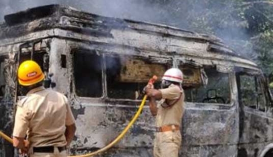 ಕಾರ್ಕಳ :ಡಿಸೆಂಬರ್ 15: ಕಾರ್ಕಳದಿಂದ ಕಳಸಕ್ಕೆ ಹೋಗುತ್ತಿದ್ದ ಟಿ.ಟಿ.ಫೋಸ್೯ ವಾಹನವೊಂದು ಎಸ್ ಕೆ ಬಾರ್ಡರ್ ಮುಂಭಾಗದಲ್ಲಿ ಅಕಸ್ಮಿಕವಾಗಿ ಬೆಂಕಿಗಾಹುತಿಯಾದ ಘಟನೆ ಶನಿವಾರ ಮಧ್ಯಾಹ್ನ ಸಂಭವಿಸಿದೆ.