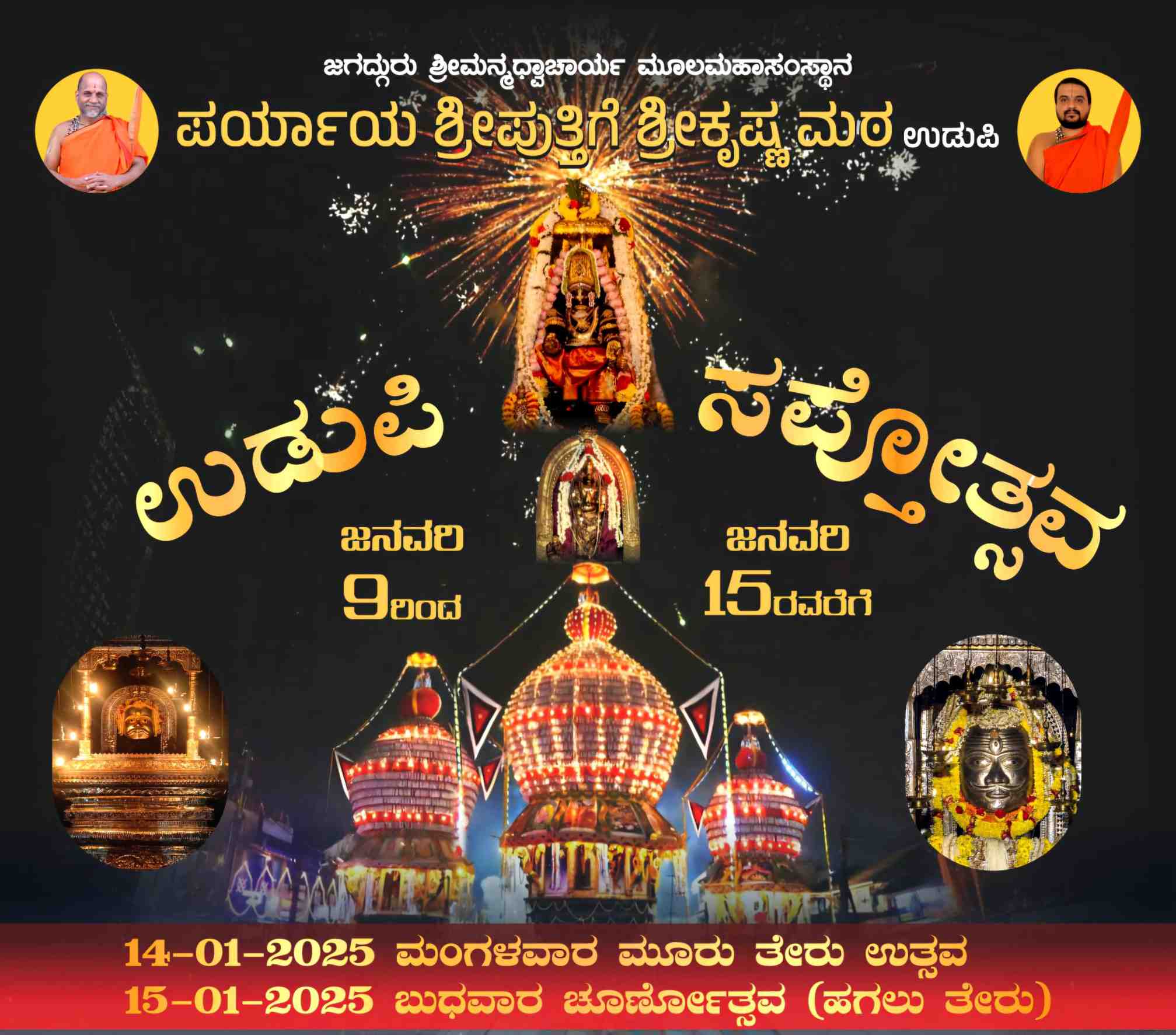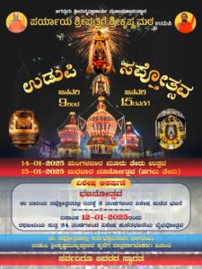 ಉಡುಪಿ :ಜನವರಿ 08:ಪರ್ಯಾಯ ಶ್ರೀ ಪುತ್ತಿಗೆ ಶ್ರೀಕೃಷ್ಣ ಮಠದ ಆಶ್ರಯದಲ್ಲಿ ನಡೆಯುವ ವಾರ್ಷಿಕ ಸಪ್ತೋತ್ಸವ ಕಾರ್ಯಕ್ರಮ ಜನವರಿ ೯ ರಿಂದ ಮೊದಲ್ಗೊಂಡು ಜನವರಿ ೧೫ರವರೆಗೆ ೭ ದಿನಗಳ ಕಾಲ ಅತ್ಯಂತ ವೈಭವ ದಿಂದ ನಡೆಯಲಿದೆ.