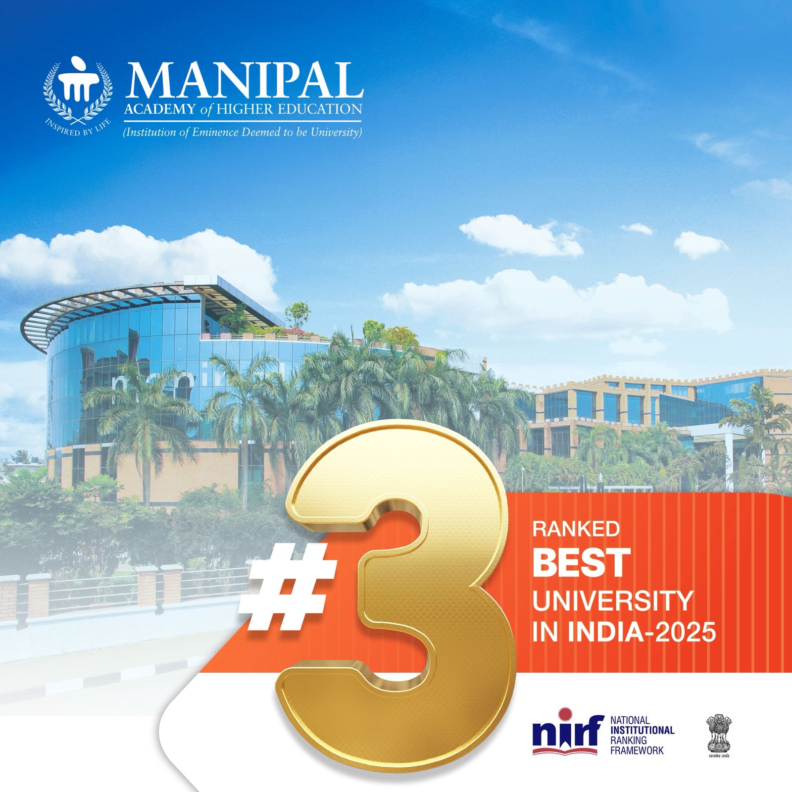 ಮಣಿಪಾಲ, ಸೆಪ್ಟೆಂಬರ್ 4, 2025: ರಾಷ್ಟ್ರೀಯ ಸಾಂಸ್ಥಿಕ ಶ್ರೇಯಾಂಕ ಚೌಕಟ್ಟಿನ (NIRF) ವಿಶ್ವವಿದ್ಯಾಲಯ ವಿಭಾಗದ 2025 ಸಾಲಿನ ರ್ಯಾಂಕಿಂಗ್ನಲ್ಲಿ 3ನೇ ಸ್ಥಾನವನ್ನು ಪಡೆಯುವ ಮೂಲಕ ಮಣಿಪಾಲ ಅಕಾಡೆಮಿ ಆಫ್ ಹೈಯರ್ ಎಜುಕೇಶನ್ (ಮಾಹೆ) -ವಿಶ್ವವಿದ್ಯಾಲಯ ಎಂದು ಪರಿಗಣಿತವಾದ ಉತ್ಕೃಷ್ಟ ಸಂಸ್ಥೆ (Institution of Eminence Deemed to be University)- ಐತಿಹಾಸಿಕ ಮೈಲಿಗಲ್ಲನ್ನು ಸಾಧಿಸಿದೆ. ಈ ಮೂಲಕ ಕಳೆದ ಸಾಲಿನಲ್ಲಿ ಹೊಂದಿದ್ದ 4ನೇ ಸ್ಥಾನದಿಂದ ಮೂರನೇ ಸ್ಥಾನಕ್ಕೆ ಮೇಲ್ದರ್ಜೆಗೇರಿದೆ.