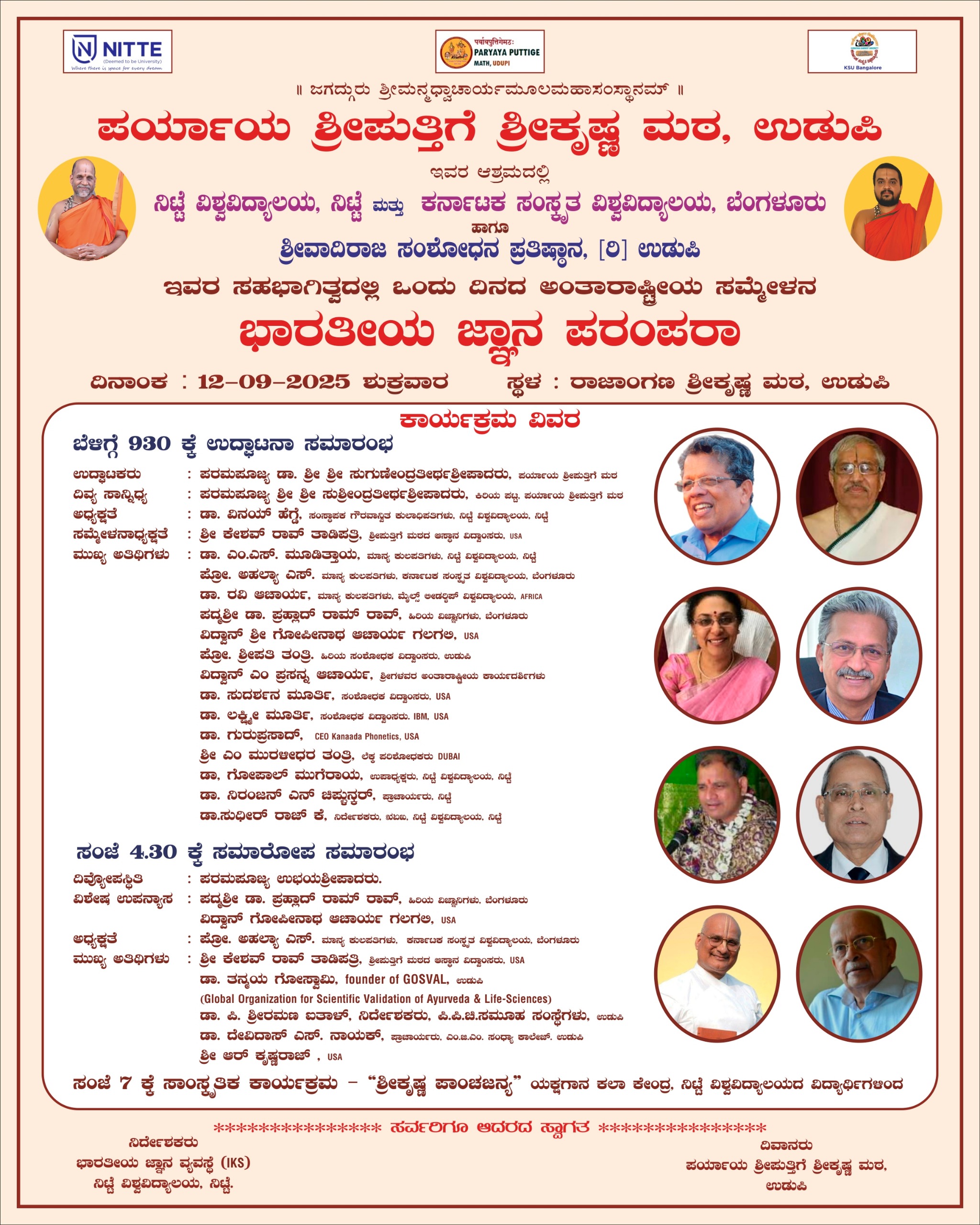ಪರ್ಯಾಯ ಶ್ರೀ ಪುತ್ತಿಗೆ ಮಠ ಶ್ರೀಕೃಷ್ಣ ಮಠ, ನಿಟ್ಟೆ ವಿ ವಿ ಯ ಭಾರತೀಯ ಜ್ಞಾನ ವ್ಯವಸ್ಥೆ ವಿಭಾಗ, ಕರ್ನಾಟಕ ಸಂಸ್ಕೃತ ವಿಶ್ವವಿದ್ಯಾಲಯ ಹಾಗೂ ಶ್ರೀ ವಾದಿರಾಜ ಸಂಶೋಧನ ಪ್ರತಿಷ್ಠಾನದ ಆಶ್ರಯದಲ್ಲಿ ಶ್ರೀಕೃಷ್ಣ ಜನ್ಮಾಷ್ಟಮಿಯ ಪ್ರಯುಕ್ತ ನಡೆಯುತ್ತಿರುವ ಮಂಡಲೋತ್ಸವದ ಜ್ಞಾನ ಮಂಡಲೋತ್ಸವ ಪ್ರಯುಕ್ತ ಈ ಸಮ್ಮೇಳನ ನಡೆಯುತ್ತಿದೆ.