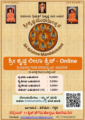 ಕೃಷ್ಣ ಲೀಲಾ ರಸಪ್ರಶ್ನೆ (Online): 21-ಆಗಸ್ಟ್ ರಿಂದ 11-ಸೆಪ್ಟೆಂಬರ್ ವರೆಗೆ..!