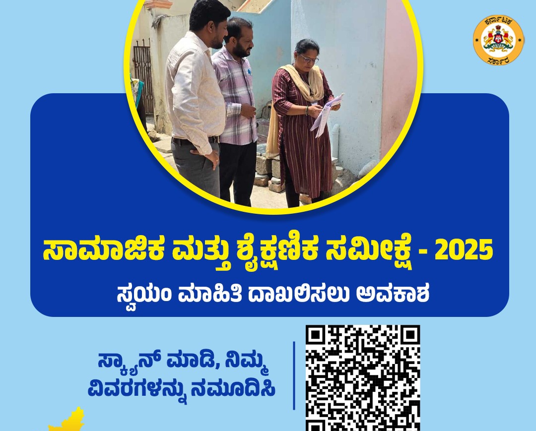 ಬೆಂಗಳೂರು : ಅಕ್ಟೋಬರ್ 06:ರಾಜ್ಯದ ಎಲ್ಲಾ ನಾಗರಿಕರ ಸಾಮಾಜಿಕ ಮತ್ತು ಶೈಕ್ಷಣಿಕ ಸ್ಥಿತಿಗತಿಗಳ ಕುರಿತು ನಿಖರವಾದ ಮಾಹಿತಿ ಸಂಗ್ರಹಿಸಲು ಈಗಾಗಲೇ ರಾಜ್ಯಾದ್ಯಂತ ಸಮೀಕ್ಷೆ ಕಾರ್ಯ ಆರಂಭಗೊಂಡಿದ್ದು, ಈ ಸಮೀಕ್ಷೆಯು ಅಕ್ಟೋಬರ್ 7ರ ವರೆಗೆ ನಡೆಯಲಿದೆ.