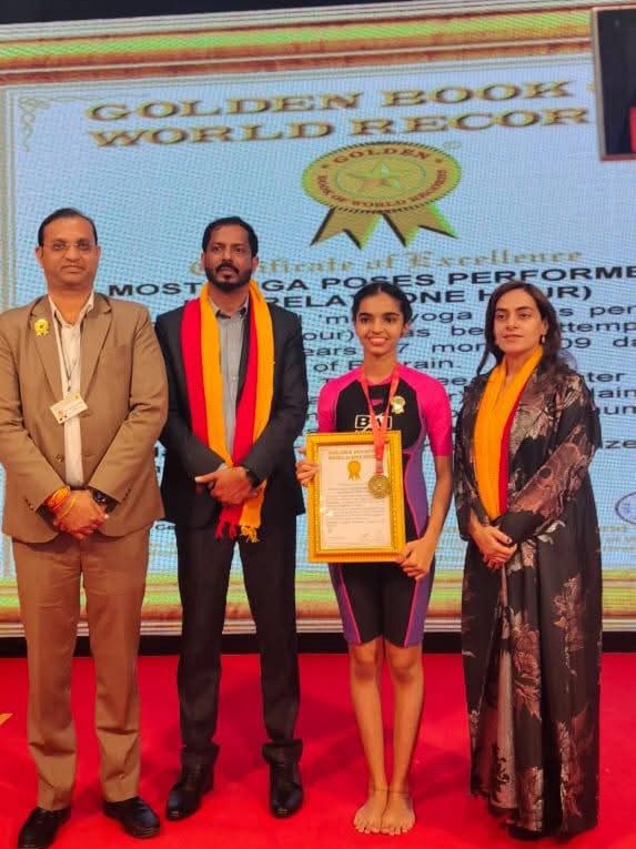 ಉಡುಪಿ:ಅಕ್ಟೋಬರ್ 24:ಬೆಹರಿನ್ ಕನ್ನಡ ಸಂಘದ ಸಭಾಂಗಣದಲ್ಲಿ ನಡೆದ ಕಾರ್ಯಕ್ರಮದಲ್ಲಿ ಉಡುಪಿಯ ಯೋಗಬಾಲೆ ತನುಶ್ರೀ ಪಿತ್ರೋಡಿ ಐವತ್ತು ನಿಮಿಷದಲ್ಲಿ 333 ಆಸನಗಳನ್ನು ಮಾಡುವ ಮೂಲಕ ಹತ್ತನೇ ವಿಶ್ವದಾಖಲೆ ಮಾಡುವ ಮೂಲಕ ಗೋಲ್ಡನ್ ಬುಕ್ ಆಫ್ ರೆಕಾರ್ಡ್ ಗೆ ಸೇರ್ಪಡೆಯಾದಳು.