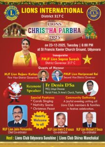 ಉದ್ಯಾವರದ ಸಂತ ಫ್ರಾನ್ಸಿಸ್ ಕ್ಸೇವಿಯರ್ ದೇವಾಲಯದ ಮೈದಾನದಲ್ಲಿ ಸಂಜೆ 6 ಗಂಟೆಗೆ ಜಿಲ್ಲಾ ಗವರ್ನರ್ ಲಯನ್ ಸಪ್ನಾ ಸುರೇಶ್ ಲಯನ್ಸ್ ಕ್ರಿಸ್ತ ಪರ್ಭ 2025 ಕಾರ್ಯಕ್ರಮವನ್ನು ಉದ್ಘಾಟನೆಗೊಳಿಸಲಿದ್ದು, ಪ್ರಥಮ ಉಪ ಗವರ್ನರ್ ಲಯನ್ ರಾಜೀವ್ ಕೋಟ್ಯಾನ್, ದ್ವಿತೀಯ ಉಪ ಗವರ್ನರ್ ಲಯನ್ ಹರಿಪ್ರಸಾದ್ ರೈ ಸಹಿತ ಹಲವು ಲಯನ್ಸ್ ನಾಯಕರುಗಳು ಮತ್ತು ಸಮಾಜದ ಗಣ್ಯ ಅತಿಥಿಗಳು ಮುಖ್ಯ ಅತಿಥಿಗಳಾಗಿ ಭಾಗವಹಿಸಲಿದ್ದಾರೆ. ಕಾರ್ಯಕ್ರಮದಲ್ಲಿ ಉಡುಪಿ ಧರ್ಮಪ್ರಾಂತ್ಯದ ಸಾರ್ವಜನಿಕ ಸಂಪರ್ಕ ಅಧಿಕಾರಿ, ತೊಟ್ಟo ಚರ್ಚಿನ ಪ್ರಧಾನ ಧರ್ಮಗುರುಗಳಾದ ವoದನೀಯ ಫಾ. ಡೆನ್ನಿಸ್ ಡೆಸಾ ಕ್ರಿಸ್ಮಸ್ ಸಂದೇಶ ನೀಡಲಿದ್ದಾರೆ.