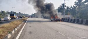 ಉಡುಪಿ:ನವೆಂಬರ್ 20: ಚಲಿಸುತ್ತಿದ್ದ ಕಾರಿನಲ್ಲಿ ಆಕಸ್ಮಿಕವಾಗಿ ಬೆಂಕಿ ಕಾಣಿಸಿಕೊಂಡು, ಕಾರು ಸಂಪೂರ್ಣ ಸುಟ್ಟು ಭಸ್ಮವಾದ ಘಟನೆ ನಾವುಂದ NH66 ಫ್ಲೈಓವರ್ ಮೇಲೆ ಇಂದು (ನ 20) ಮಧ್ಯಾಹ್ನ ಸಂಭವಿಸಿದೆ
