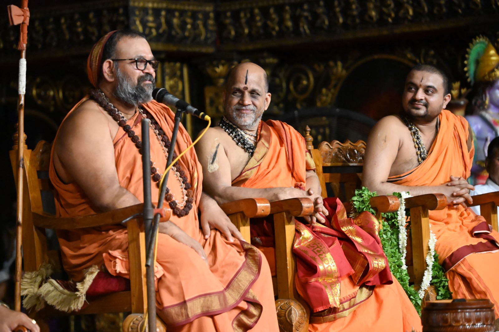 ಉಡುಪಿ:ನವೆಂಬರ್ 24:ಪರ್ಯಾಯ ಶ್ರೀ ಪುತ್ತಿಗೆ ಮಠ ಶ್ರೀಕೃಷ್ಣ ಮಠ ,ಉಡುಪಿ ವಿಶ್ವಗೀತಾ ಪರ್ಯಾಯ 2024-2026,ಶ್ರೀಕೃಷ್ಣ ಮಠದ ರಾಜಾಂಗಣದಲ್ಲಿ ಬ್ರಹತ್ ಗೀತೋತ್ಸವದ ಪ್ರಯುಕ್ತ ಪರ್ಯಾಯ ಶ್ರೀಪಾದದ್ವಯರ ದಿವ್ಯ ಉಪಸ್ಥಿತಿಯಲ್ಲಿ ಜಗದ್ಗುರು ಅನಂತಶ್ರೀ ವಿಭೂಷಿತ ಕಾಳಹಸ್ತೇಂದ್ರ ಸರಸ್ವತಿ ಮಹಾಸ್ವಾಮೀಜಿ, ಶ್ರೀಮತ್ ಜಗದ್ಗುರು ಆನೆಗುಂದಿ ಸಂಸ್ಥಾನ, ಕಟಪಾಡಿ ಇವರಿಂದ ಸಂತ ಸಂದೇಶ ನವೆಂಬರ್ 23ರವಿವಾರ ನಡೆಯಿತು