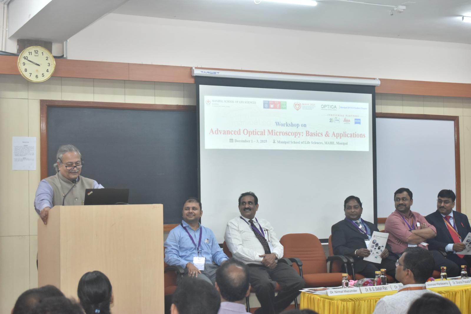 ಸೆಲ್ ಮತ್ತು ಮೊಲಿಕ್ಯು ಲಾರ್ ಬಯಾಲಜಿ ವಿಭಾಗದ ಪ್ರೊಫೆಸರ್ , ವಿಭಾಗದ ಮುಖ್ಯಸ್ಥ ಮತ್ತು ಸಂಯೋಜಕರಾದ ಡಾ. ಶಾಮ ಪ್ರಸಾದ ಕೆ. ಅವರು ಕಾರ್ಯಾಗಾರದ ಸಮಗ್ರ ಅವಲೋಕನವನ್ನು ಮಂಡಿಸಿ, ಆಪ್ಟಿಕಲ್ ಮೈಕ್ರೋಸ್ಕೋಪಿಯ ಮೂಲಭೂತ ಹಾಗೂ ಪ್ರಗತಿಪರ ಜ್ಞಾನ ವೃದ್ಧಿಸುವುದೇ ಕಾರ್ಯಾಗಾರದ ಉದ್ದೇಶವೆಂದು ವಿವರಿಸಿದರು. ಉದ್ಘಾಟನಾ ಅಧಿವೇಶನದ ಕೊನೆಯಲ್ಲಿ ಮಣಿಪಾಲ ಸ್ಕೂಲ್ ಆಫ್ ಲೈಫ್ ಸೈನ್ಸಸ್, ಮಣಿಪಾಲ ಅಕಾಡೆಮಿ ಆಫ್ ಹೈಯರ್ ಎಜುಕೇಷನ್ ನ ರೇಡಿಯೇಶನ್ ಬಯಾಲಜಿ ಹಾಗೂ ಟಾಕ್ಸಿಕಾಲಜಿ ವಿಭಾಗದ ಸಹ ಪ್ರಾಧ್ಯಾಪಕ ಮತ್ತು ಸಂಯೋಜಕರಾದ ಡಾ. ಮನಶ್ ಕೆ. ಪಾಲ್ ಅವರು ಧನ್ಯವಾದ ಸಮರ್ಪಿಸಿದರು.