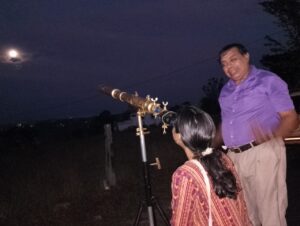 ಆರ್ ಮನೋಹರ್ ಅವರು ಆವಿಷ್ಕರಿಸಿದ ಎರಡು ಕಣ್ಣಿನಲ್ಲಿ ನೋಡುವ ದೂರದರ್ಶಕದಲ್ಲಿ. ಈಶ್ವರ ನಗರದ ಪ್ರಕೃತಿಯ ಮಡಿಲಲ್ಲಿ. ಮೋಡದ. ಮರೆಯಲ್ಲಿ ಮೂಡಿಬಂದ ಚಂದ್ರನನ್ನು. ಸಾರ್ವಜನಿಕರು ವೀಕ್ಷಿಸಿದರು. ಮೋಡ ಕವಿದ ವಾತಾವರಣ ಇದ್ದದ್ರಿಂದ ತೊಂದರೆಯಾಗುತ್ತಿತ್ತು.