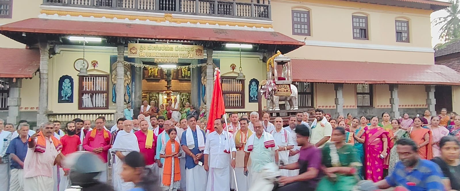 ಕಾರ್ಕಳ:ಡಿಸೆಂಬರ್ 12:ಶ್ರೀ ವ್ಯಾಸ ಧ್ವಜ ಸಹಿತ ಸಂಕೀರ್ತನಾ ಪಾದಯಾತ್ರೆಯು ಶ್ರೀ ಕಾಶೀ ಮಠ ಸಂಸ್ಥಾನದ ಪರಮಪೂಜ್ಯ ಗುರುವರ್ಯ ಶ್ರೀಮದ್ ಸುಧೀಂದ್ರ ತೀರ್ಥ ಸ್ವಾಮೀಜಿಯವರ ಜನ್ಮ ಶತಾಬ್ದಿ ಆರಾಧನೆಯ ಮಂಗಲೋತ್ಸವ ಪ್ರಯುಕ್ತ ದಿನಾಂಕ 12-12-2025 ರಂದು ಸಾಯಂಕಾಲ ಕಾರ್ಕಳ ಶ್ರೀ ಪಡುತಿರುಪತಿ ಖ್ಯಾತಿಯ ಶ್ರೀ ವೆಂಕಟರಮಣ ದೇವಸ್ಥಾನದಲ್ಲಿ ಪ್ರಾರ್ಥನೆ ಸಲ್ಲಿಸಿ ಶ್ರೀ ಜಯರಾಮ್ ಪ್ರಭು ಆಡಳಿತ ಮೊಕ್ತೇಸರ ರು, ವ್ಯಾಸ ಧ್ವಜ ಸಹಿತ ಸಂಕೀರ್ತನಾ ಪಾದಯಾತ್ರೆ ಗೆ ಚಾಲನೆಯನ್ನು ನೀಡಿದರು.ಕಾರ್ಕಳ, ಶ್ರೀ ವೆಂಕಟರಮಣ ದೇವಸ್ಥಾನದಿಂದ , ಬೈಲೂರು ಶ್ರೀ ರಾಮಮಂದಿರದ ವರೆಗೆ ಶ್ರೀ ವ್ಯಾಸ ಧ್ವಜ ಸಹಿತ ಸಂಕೀರ್ತನಾ ಪಾದಯಾತ್ರೆ ನಡೆಯಿತು. ಶ್ರೀ ವೆಂಕಟರಮಣ ದೇವಸ್ಥಾನದ ಆಡಳಿತ ಮೊಕ್ತೇಸರರು, ಅರ್ಚಕ ವೃಂದ ದವರು ಆಡಳಿತ ಮಂಡಳಿ ಸರ್ವ ಸದಸ್ಯರು ಜಿ. ಎಸ್. ಬಿ. ಸಮಾಜ ಭಾಂದವರು ಸಂಕೀರ್ತನಾ ಭಜನಾ ಪಾದಯಾತ್ರೆಯಲ್ಲಿ ಭಾಗವಹಿಸಿದರು.