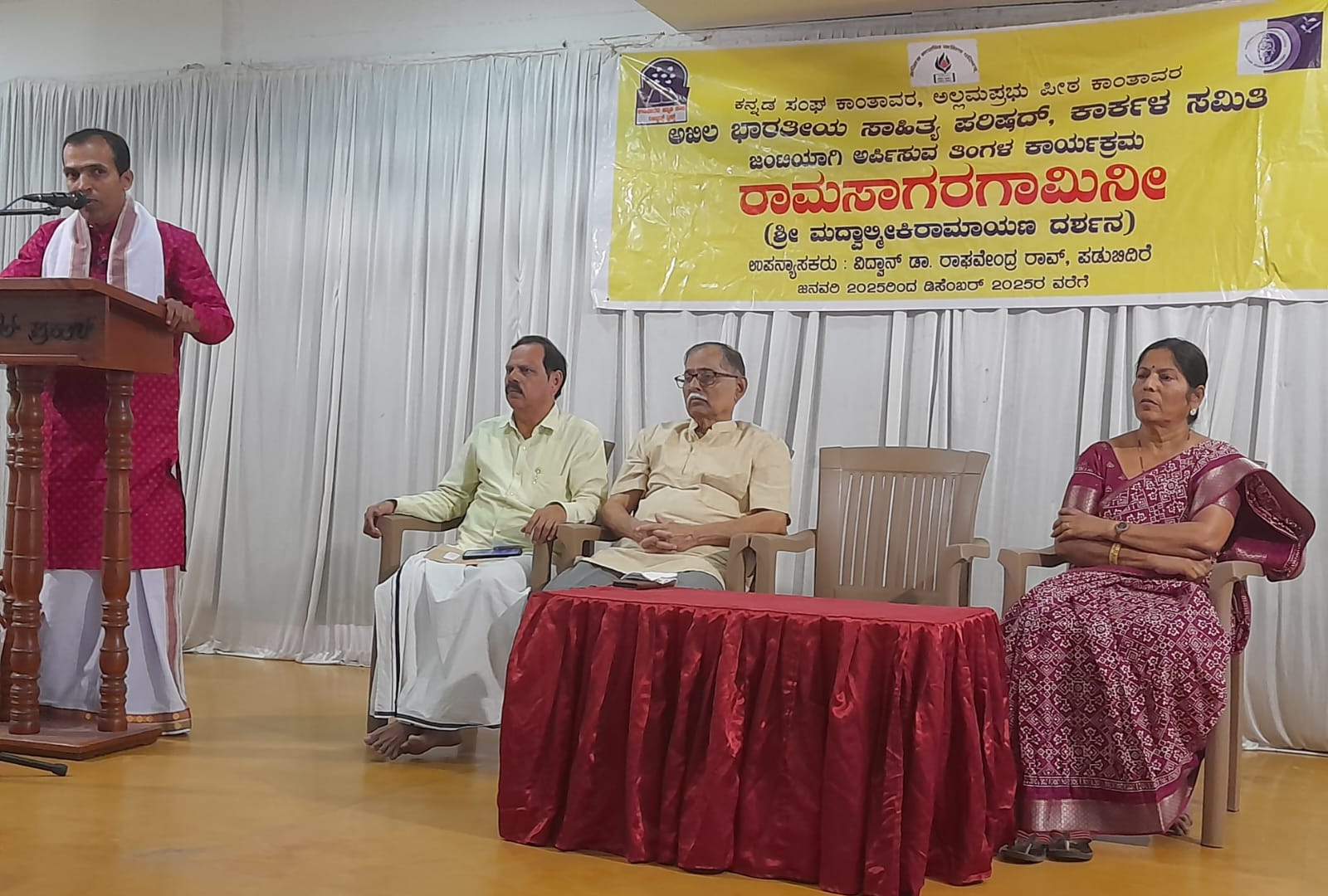 ಕನ್ನಡ ಸಂಘ ಕಾಂತಾವರ, ಅಲ್ಲಮಪ್ರಭು ಪೀಠ ಕಾಂತಾವರ ಮತ್ತು ಅಖಿಲ ಭಾರತೀಯ ಸಾಹಿತ್ಯ ಪರಿಷದ್ ಕಾರ್ಕಳ ತಾಲೂಕು ಘಟಕ ಇವುಗಳ ಸಹಭಾಗಿತ್ವದಲ್ಲಿ ೨೦೨೫ರ ವರ್ಷ ಪ್ರತೀ ತಿಂಗಳು ರಾಮಸಾಗರಗಾಮಿನೀ ಎಂಬ ಶ್ರೀಮದ್ ವಾಲ್ಮೀಕಿ ರಾಮಾಯಣ ದರ್ಶನ ಉಪನ್ಯಾಸವನ್ನು ಹಮ್ಮಿಕೊಂಡಿದ್ದು ಈ ಮಾಲೆಯ ಕೊನೆಯ ಕಾರ್ಯಕ್ರಮ ದ್ವಾದಶ ಸೋಪಾನ ‘ ಮಂಗಲಂ ಕೋಸಲೇಂದ್ರಾಯ’ ಎಂಬ ವಿಷಯದ ಕುರಿತು ಡಿಸೆಂಬರ್ ೧೩ರಂದು ಕಾರ್ಕಳದ ಹೋಟೆಲ್ ಪ್ರಕಾಶ್ ಇದರ ಸಂಭ್ರಮ ಸಭಾಂಗಣದಲ್ಲಿ ಅವರು ಉಪನ್ಯಾಸ ನೀಡಿದರು.