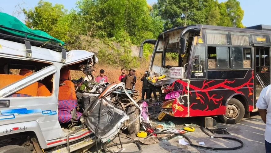 ಕಾರ್ಕಳ: ಜನವರಿ 23:ಕಾರ್ಕಳ ತಾಲೂಕಿನ ಮಿಯಾರು ಕಂಬಳಕ್ರಾಸ್ ಬಳಿ ಇಂದು ಮಧ್ಯಾಹ್ನ ವೇಳೆ ಖಾಸಗಿ ಬಸ್ ಹಾಗೂ ತುಫಾನ್ ವಾಹನದ ನಡುವೆ ಸಂಭವಿಸಿದ ಭೀಕರ ಅಪಘಾತದಲ್ಲಿ ಮೂವರು ಸ್ಥಳದಲ್ಲೇ ಮೃತಪಟ್ಟಿದ್ದು, ಹಲವರು ಗಂಭೀರವಾಗಿ ಗಾಯಗೊಂಡಿರುವ ಘಟನೆ ಸಂಭವಿಸಿದೆ.