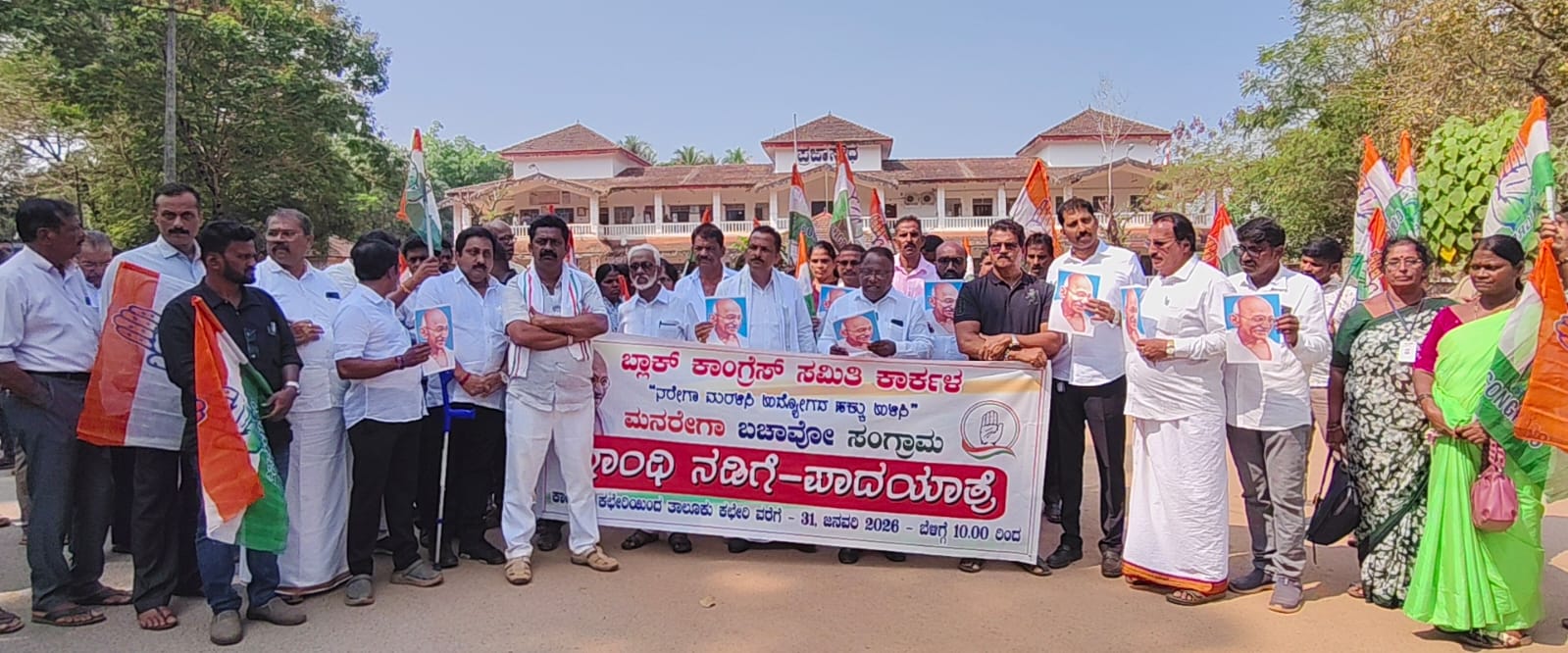 ಕಾರ್ಕಳ ಬ್ಲಾಕ್ ಕಾಂಗ್ರೆಸ್ ಆಶ್ರಯದಲ್ಲಿ “ಮನರೇಗಾ ಬಚಾವೋ ಸಂಗ್ರಾಮ್” ಆಂದೋಲನದ ಅಂಗವಾಗಿ ನಡೆದ ಗಾಂಧಿ ನಡಿಗೆ ಜಾಥಾ ಹಾಗೂ ಕಾರ್ಕಳ ತಾಲೂಕು ಕಚೇರಿ ಮುಂಭಾಗದಲ್ಲಿ ಆಯೋಜಿಸಿದ ಪ್ರತಿಭಟನಾ ಸಭೆಯನ್ನು ಉದ್ದೇಶಿಸಿ ಮಾತನಾಡಿದ ಅವರು, ಕೇಂದ್ರ ಸರ್ಕಾರ ತನ್ನ ಬೊಕ್ಕಸವನ್ನು ತುಂಬಿಸಿಕೊಳ್ಳುವುದರಲ್ಲೇ ನಿರತರಾಗಿದ್ದು, ರಾಜ್ಯಗಳ ಅಭಿವೃದ್ಧಿಯತ್ತ ಗಮನ ಹರಿಸುತ್ತಿಲ್ಲ. ಇದರ ಪರಿಣಾಮವಾಗಿ ರಾಜ್ಯಗಳು ಗಂಭೀರ ಆರ್ಥಿಕ ಸಂಕಷ್ಟವನ್ನು ಎದುರಿಸುತ್ತಿವೆ ಎಂದು ತಿಳಿಸಿದರು.