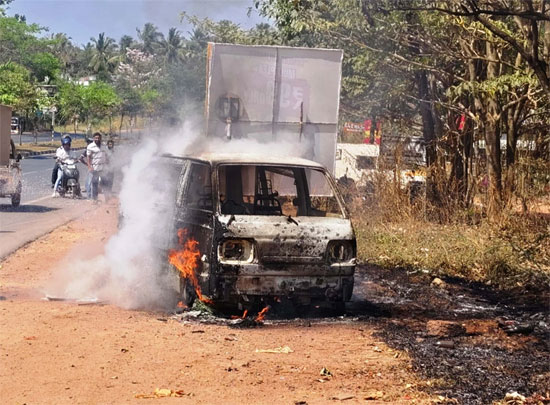ಮಂಗಳೂರು, ಫೆ. 13 : ಕೋಟೆಕಾರಿನ ಅಡ್ಕದಲ್ಲಿ ಗುರುವಾರ ಚಲಿಸುತ್ತಿದ್ದ ಓಮ್ನಿ ವ್ಯಾನ್ನಲ್ಲಿ ಆಕಸ್ಮಿಕವಾಗಿ ಬೆಂಕಿ ಕಾಣಿಸಿಕೊಂಡ ಘಟನೆ ನಡೆದಿದೆ. ಹಿಂದಿನಿಂದ ಬರುತ್ತಿದ್ದ ವಾಹನ ಸವಾರರ ಎಚ್ಚರಿಕೆಯಿಂದ ಚಾಲಕ ಅಪಾಯದಿಂದ ಪಾರಾಗಿದ್ದಾರೆ.