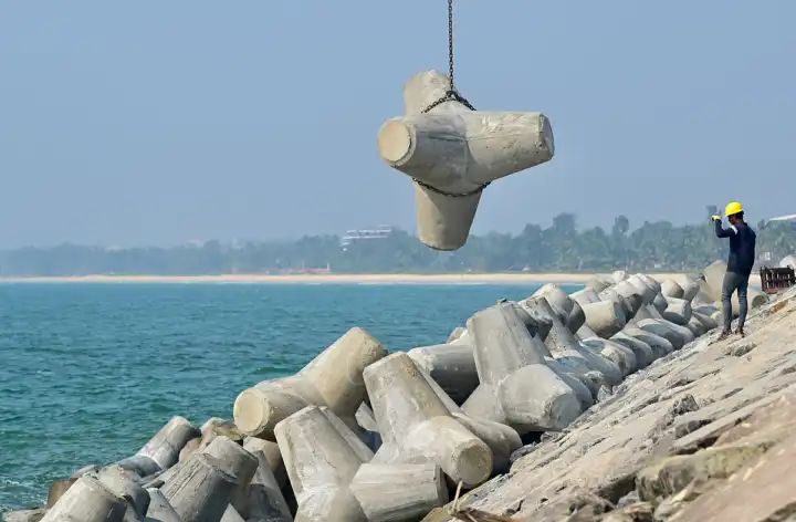 ಮಂಗಳೂರು, ಮಾ. 4: ನವಮಂಗಳೂರು ಬಂದರು ಪ್ರಾಧಿಕಾರ (ಎನ್ಎಂಪಿಎ) ವತಿಯಿಂದ ಕುಳಾಯಿಯಲ್ಲಿ ನಿರ್ಮಾಣವಾಗುತ್ತಿರುವ ಮೀನುಗಾರಿಕಾ ಬಂದರಿನ ಕಾಮಗಾರಿ ವರ್ಷಕ್ಕಿಂತ ಹೆಚ್ಚು ಅವಧಿಗೆ ಸ್ಥಗಿತಗೊಂಡಿದ್ದ ಬಳಿಕ ಇತ್ತೀಚೆಗೆ ಮರುಪ್ರಾರಂಭಗೊಂಡಿದೆ. ಪ್ರಸ್ತುತ ಬ್ರೇಕ್ವಾಟರ್ ಭಾಗದಲ್ಲಿ ಟೆಟ್ರಾಪಾಡ್ ಅಳವಡಿಸುವ ಕೆಲಸ ನಡೆಯುತ್ತಿದೆ.