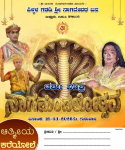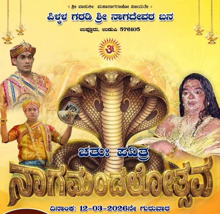 ಉಡುಪಿ, ಮಾ. 08: ಉಡುಪಿ ತಾಲೂಕಿನ ಉಪ್ಪೂರು ಗ್ರಾಮದ ಪಿಳ್ಕಳ ಗರಡಿಯಲ್ಲಿ ಇರುವ ಶ್ರೀ ನಾಗದೇವರ ಬನದಲ್ಲಿ ಮಾರ್ಚ್ 9ರಿಂದ 12ರವರೆಗೆ ಭಕ್ತಿಭಾವಪೂರ್ಣವಾಗಿ “ಚತುಃ ಪವಿತ್ರ ನಾಗಮಂಡಲೋತ್ಸವ” ಕಾರ್ಯಕ್ರಮ ನಡೆಯಲಿದೆ.