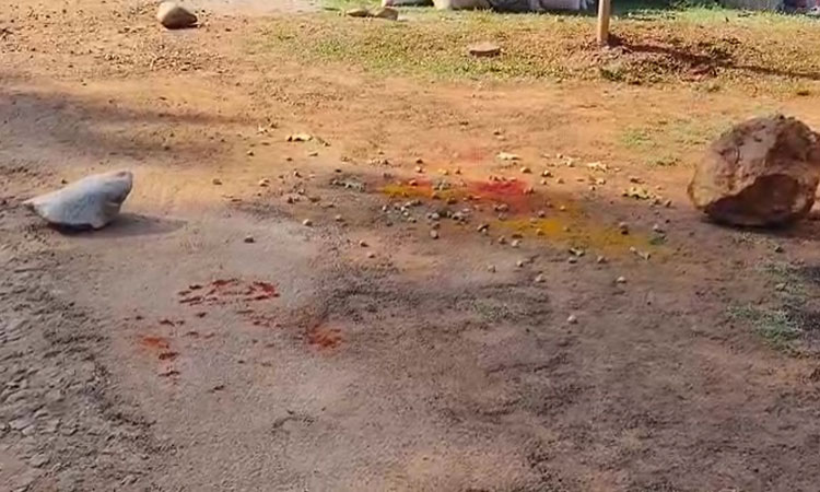 ಅಮಾವಾಸ್ಯೆ ಹಿನ್ನೆಲೆ ಬುಧವಾರ (ಮಾ.18) ಮಧ್ಯರಾತ್ರಿ ವೇಳೆ ಕಂಚಿನಕೆರೆ ಕಾಲಭೈರವೇಶ್ವರ ದೇವಾಲಯದ ಎದುರು ವಾಮಾಚಾರ ನಡೆಸಲಾಗಿದೆ ಎಂದು ತಿಳಿದುಬಂದಿದೆ.
