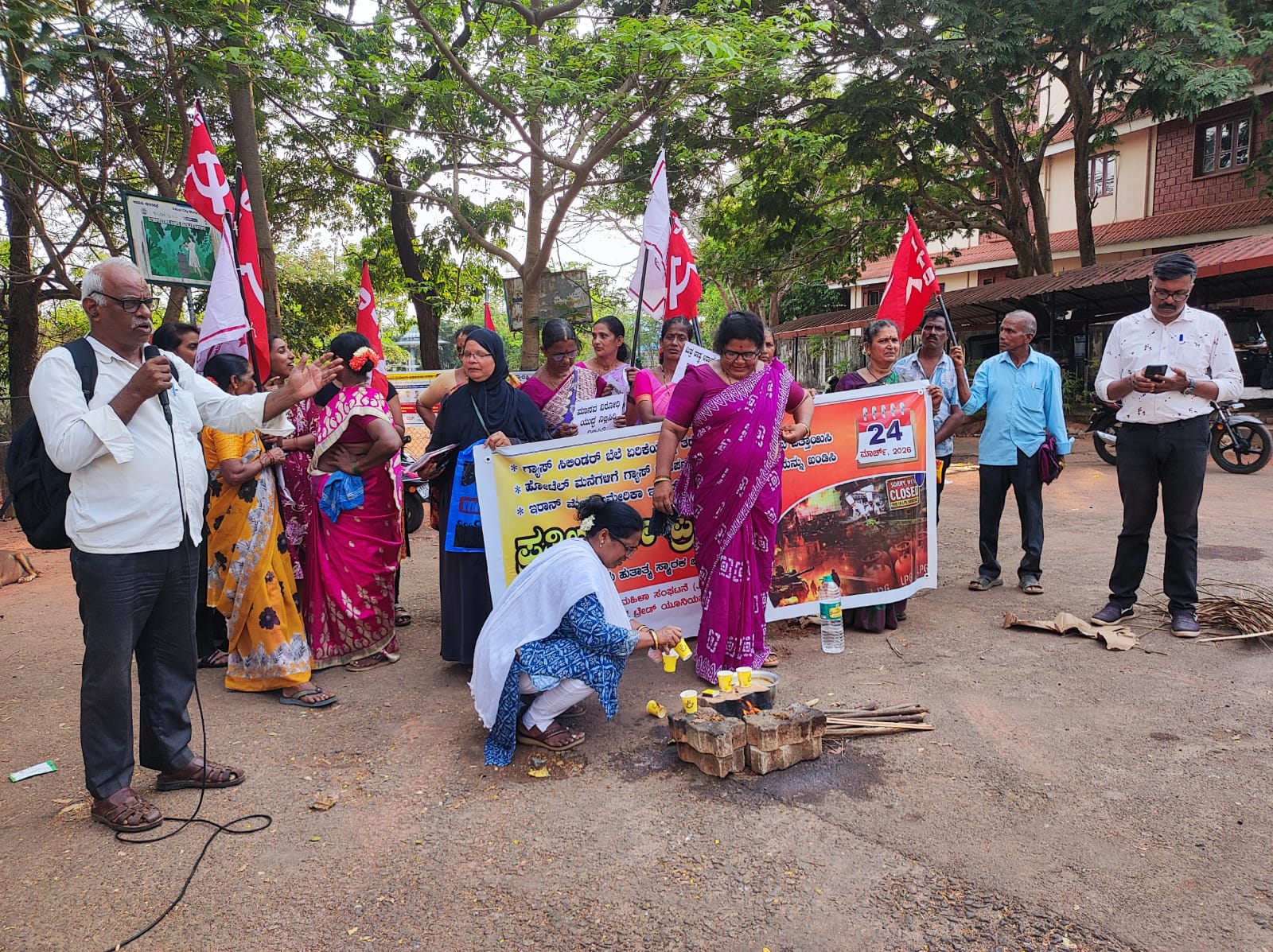 ಒಲೆಯಲ್ಲಿ ಕಾಪಿ ಮಾಡಿ ಕುಡಿದು ಕೇಂದ್ರ ಸರ್ಕಾರದ ವಿರುದ್ಧ ವಿನೂತನ ಪ್ರತಿಭಟನೆ ನಡೆಸಿ ಆಕ್ರೋಶ ವ್ಯಕ್ತಪಡಿಸಿದರು.