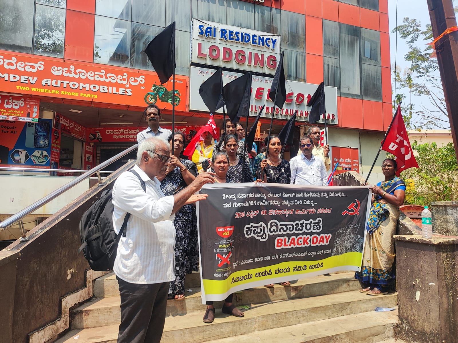 ಕಾರ್ಕಳ ದಲ್ಲಿ ಸಿಐಟಿಯು ನೇತ್ರತ್ವದಲ್ಲಿ ಕಪ್ಪು ದಿನ ಆಚರಿಸಿ ಪ್ರತಿಭಟನೆ ನಡೆಸಿದರು ಕಾರ್ಕಳ ಬೀಡಿ ಕಾರ್ಮಿಕ ಸಂಘದ ಅಧ್ಯಕ್ಷ ರಾದ ಸುನೀತಾ ಶೆಟ್ಟಿ, ಕಟ್ಟಡ ಸಂಘದ ಮುಖಂಡರಾದ ನಾಗೇಶ್, ಸಿಐಟಿಯು ಮುಖಂಡರಾದ ಜಯಂತಿ, ಶಕುಂತಲಾ, ಪುಷ್ಪ ಉಪಸ್ಥಿತರಿದ್ದರು